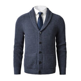 Men's Stylish Shawl Collar Knit Cardigan with Front Pockets - Comfortable Button-Up Sweater for Everyday Wear