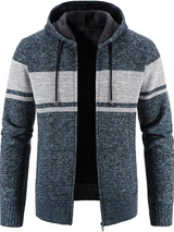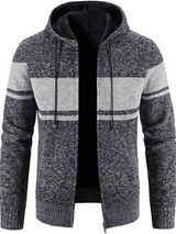 This classic piece merges the relaxed feel of a men's zip-up hoodie with the polished look of a knit cardigan. The lined interior offers extra warmth, while the drawstring hood and full zip design bring versatility for daily wear. Ideal for layering through colder months.