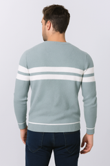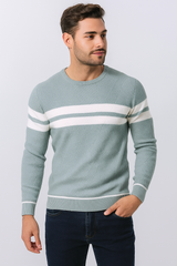 This men’s knit sweater combines modern style and comfort in a versatile piece for cooler days. With an elegant design, it features a textured pattern and white horizontal stripes that add a sporty yet sophisticated touch to the look. Perfect for creating casual or more polished outfits, it can be worn on its own or layered under jackets.