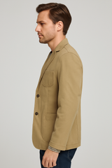 This beige blazer combines simplicity and elegance in a practical piece for everyday wear. Featuring an internal checkered lining and visible stitching, it offers a modern look with a relaxed touch. Ideal for casual occasions or informal professional settings, the blazer provides a light fit and a finish that elevates outfits with jeans, t-shirts, or dress shirts.