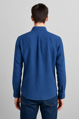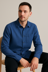 This blue linen shirt combines casual sophistication with natural comfort. Made from lightweight, breathable linen fabric, it is perfect for warm climates and occasions that call for relaxed elegance. Its classic design with a simple collar, front pocket, and full button closure offers versatility to style from casual looks to more refined outfits. The deep blue shade adds a contemporary touch to the overall appearance.