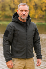 This men’s tactical jacket combines functionality with urban style. Made from durable, high-performance fabric, it provides protection against wind and light moisture, making it ideal for outdoor adventures, urban wear, or tactical activities. The design features multiple strategically placed zippered pockets, an adjustable hood, and Velcro sleeve patches for customization. Its modern cut and robust finish ensure comfort, mobility, and durability.