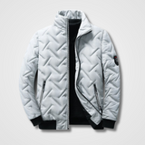 This men’s quilted bomber jacket features a chevron-stitched design, stand-up collar, and secure zip pockets for added function and edge. With ribbed cuffs and hem, it offers both structure and comfort. A must-have for casual streetwear and elevated daily looks.