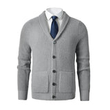 Men's Stylish Shawl Collar Knit Cardigan with Front Pockets - Comfortable Button-Up Sweater for Everyday Wear