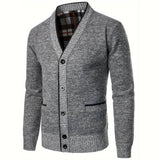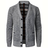 Men's Stylish V-Neck Button Cardigan with Plaid Lining & Side Pockets - Comfortable Knitwear for Every Occasion