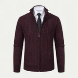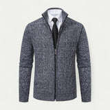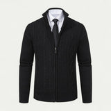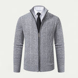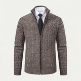 Men's High Collar Cable-Knit Zip-Up Cardigan - Stylish & Cozy Knitwear with Ribbed Hem for Ultimate Comfort