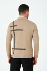 This beige sweater blends sophistication and modern style in a comfortable and versatile piece. Perfect for both formal and casual settings, the front zipper and geometric details add elegance with personality. It can be worn on its own or layered over dress shirts for a more refined look.